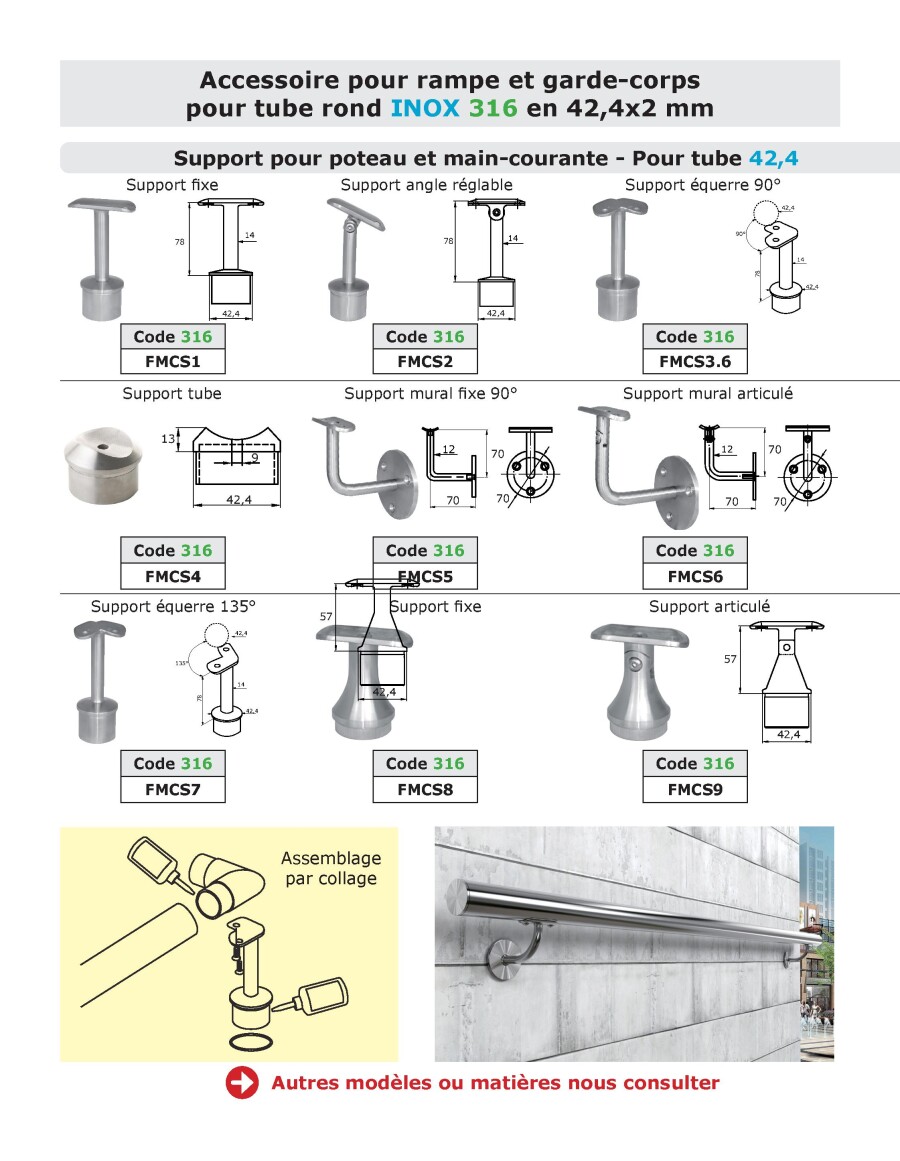 Accessoires INOX 304 et 316 pour garde-corps - Pour tubes de 42,4, pour rampes…