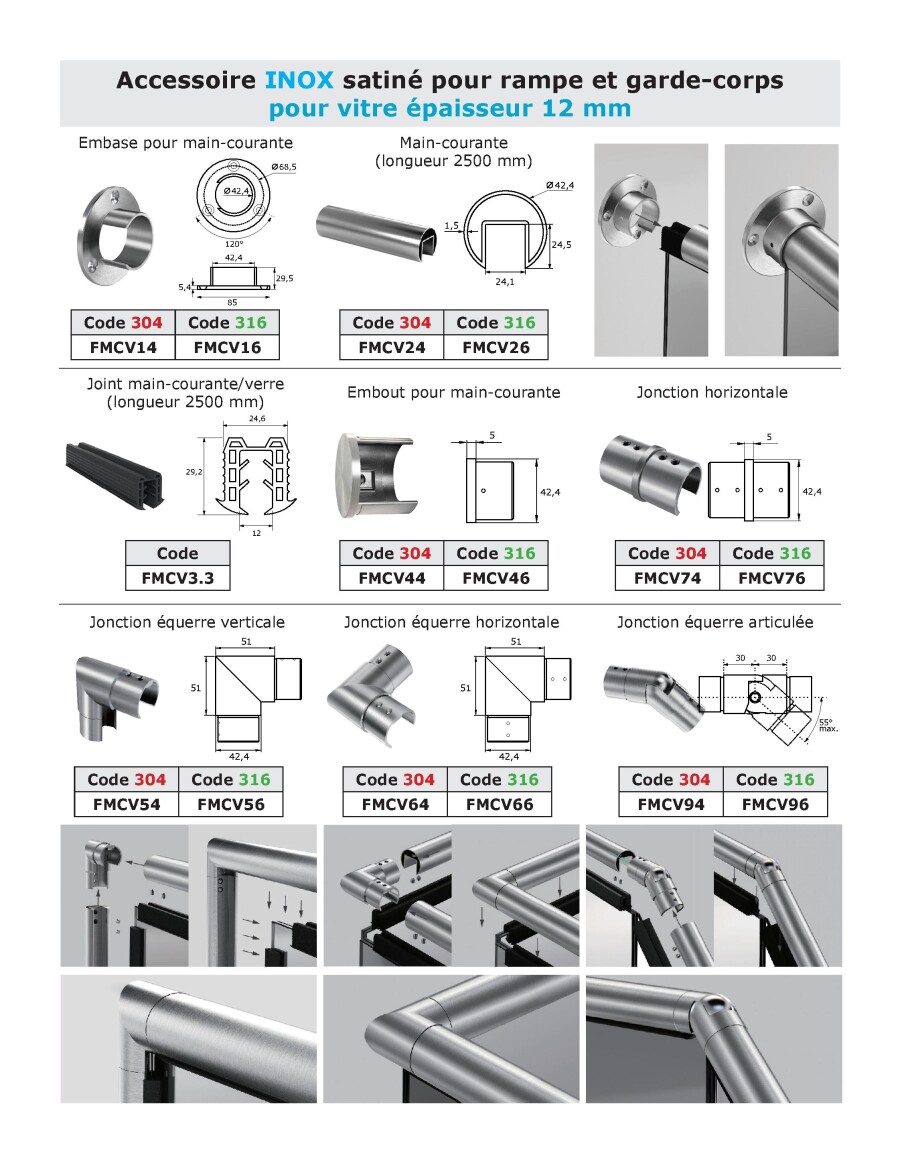 Accessoires INOX 304 et 316 pour garde-corps - Pour tubes de 42,4, pour rampes…